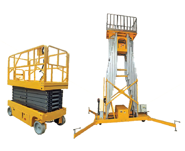 These are perhaps a revolutionary kind of equipment to be designed which almost replaced the conventional ladders which have their own limitations with respect to height, load capacity and most of all stability and safety of operators and workmen and workwomen. There are multiple options available in this equipment: Scissor lift types with platform height up to 18m for indoor and outdoor use, Aerial Work Platforms – single and multi-mast types with maximum platform height up to 22m.